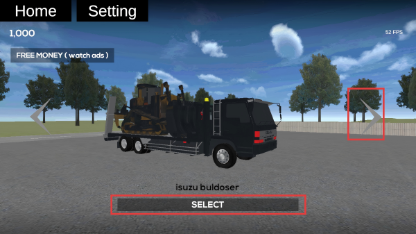 2、在车辆选择页,点击右侧箭头切换心仪卡车,选好后点【SELECT】确定,准备出发咯。
