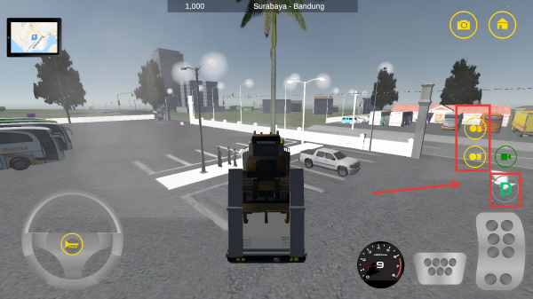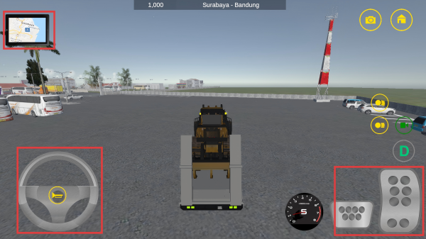 3、在驾驶时,左侧方向盘控制方向,右侧踏板控制油门刹车,看左上角地图规划路线,开启运输吧。
