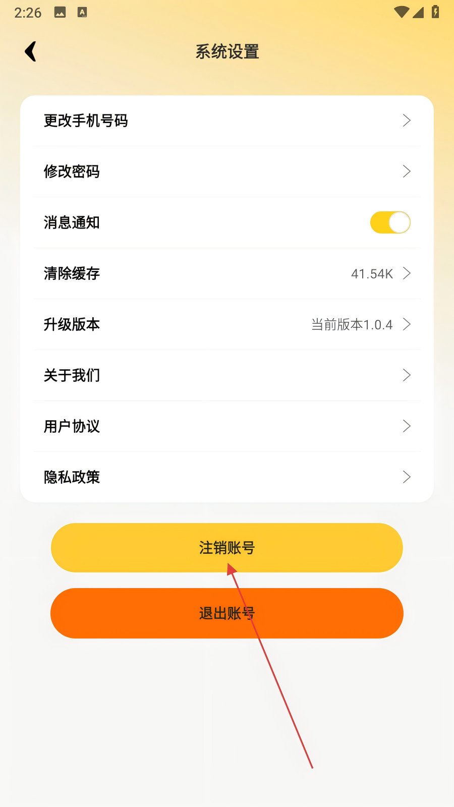 3、在【系统设置】页,点击【注销账号】按钮。