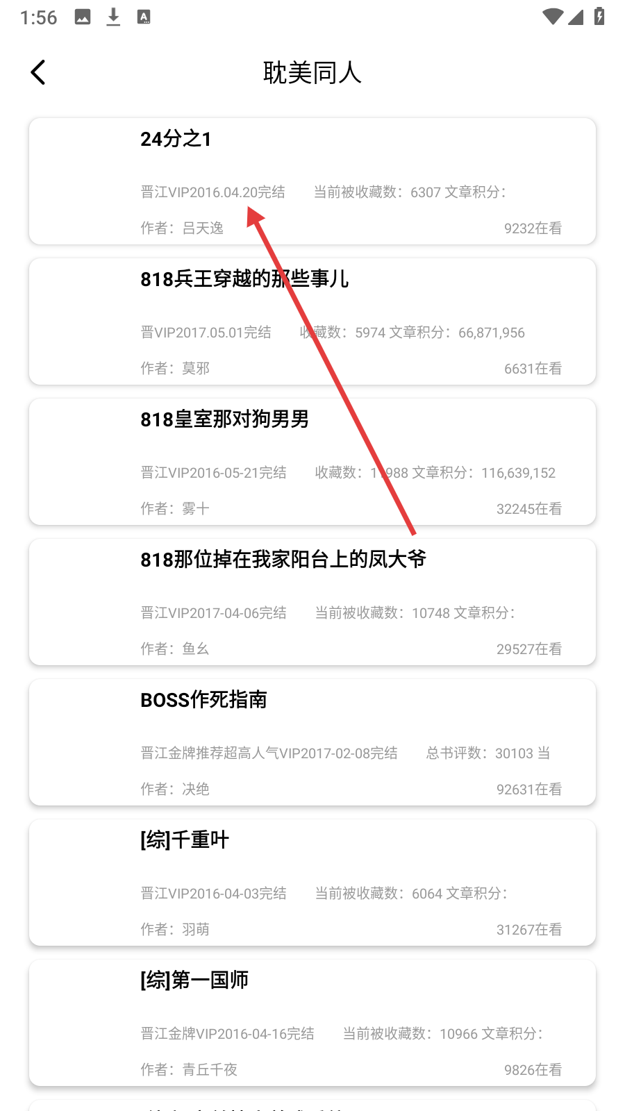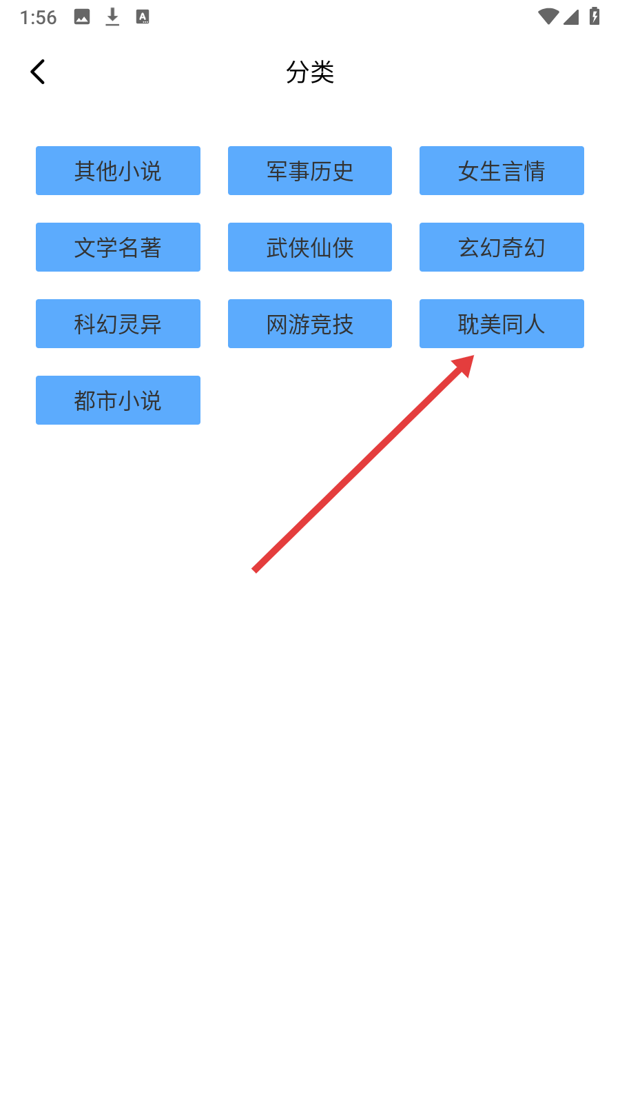2、分类页点击【耽美同人】,进入该分类书籍列表页。