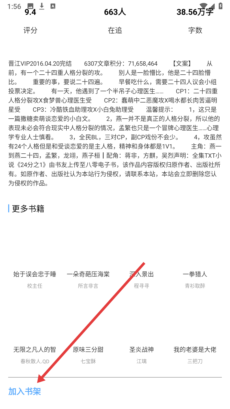 4、详情页点击【加入书架】,即可将书籍添加至个人书架。