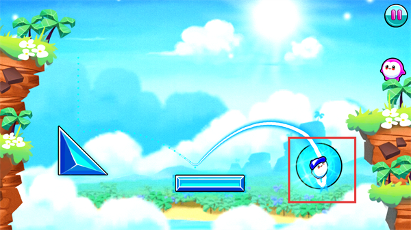 3、操控角色弹跳,借助搭建的板块,调整跳跃轨迹,向目标区域前进。
