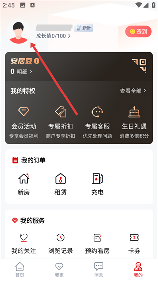 1、打开安居链,点击个人头像,正式进入实名认证流程呀。
