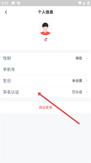2、在个人信息界面,找到【实名认证】选项并点击,进入认证入口哦。