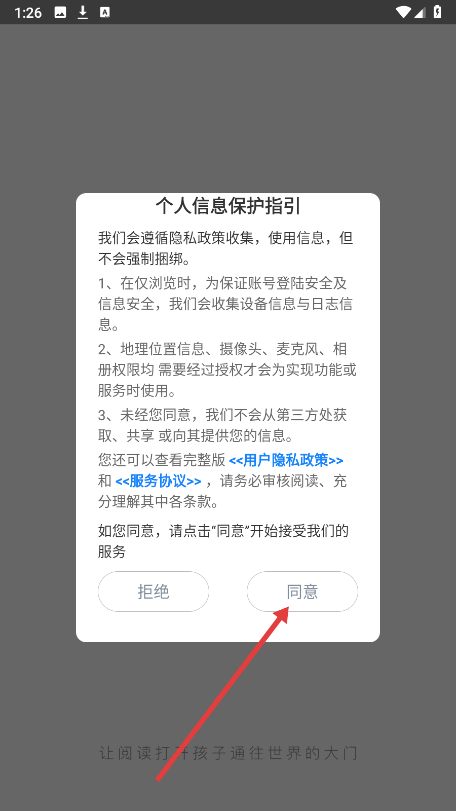 1、点击弹窗【同意】,接受个人信息保护指引进入登录页。