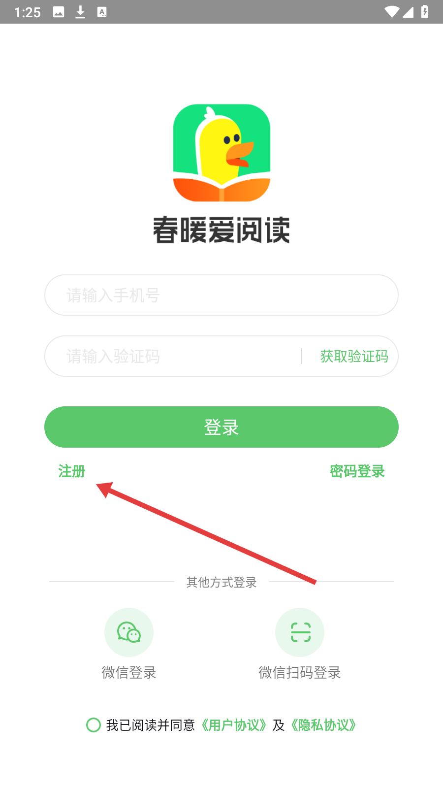 2、在登录界面点击【注册】,进入手机号注册流程页。
