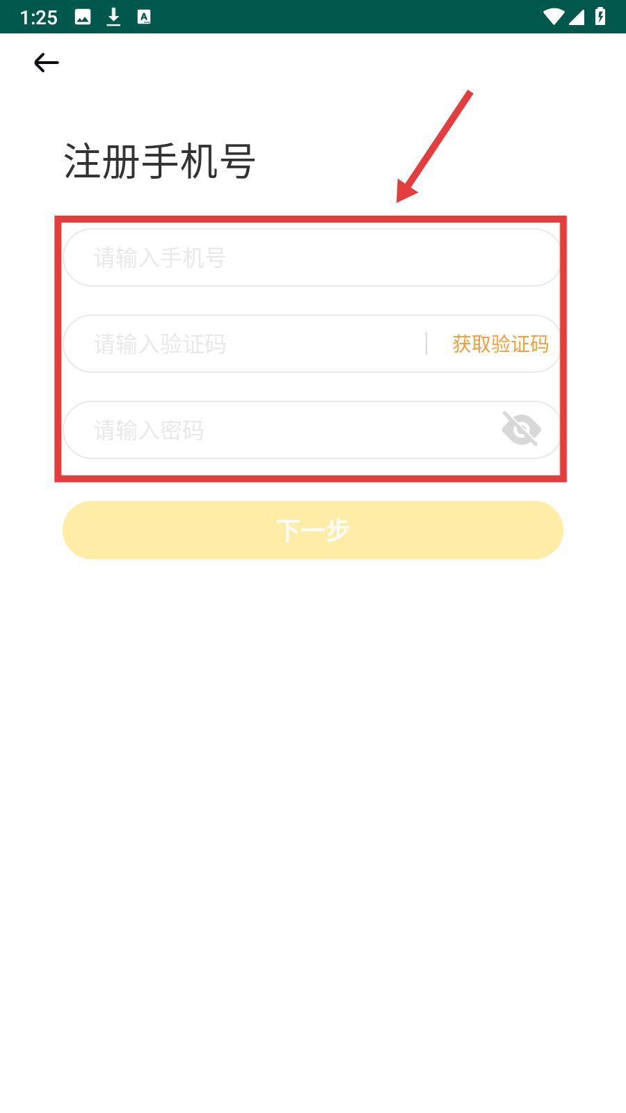 3、填写【手机号、验证码、密码】,准备注册操作。