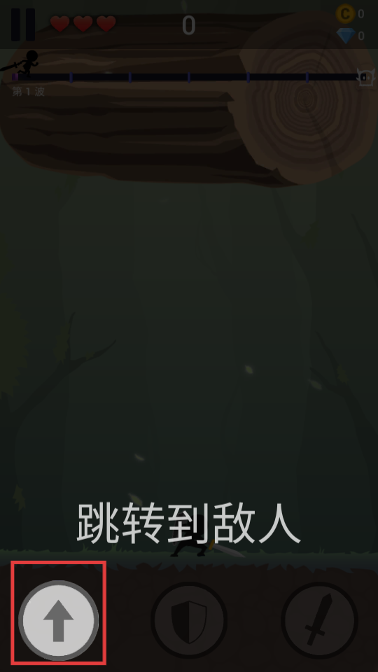 2、战斗时点击左下角向上箭头按钮,控制角色跳转到敌人,接近战斗目标。