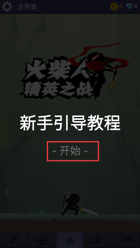 1、点击【火柴人精英之战新手引导教程】的【开始】按钮,开启引导学习操作。