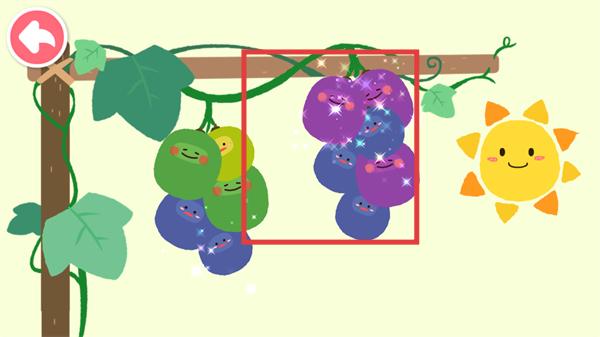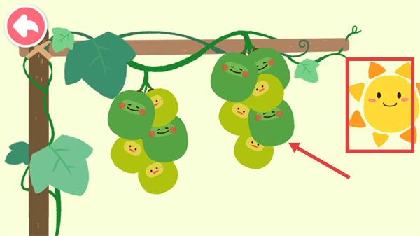 3、在葡萄生长场景中点击【太阳】元素,触发葡萄的生长变化,推进果蔬成长的互动步骤。