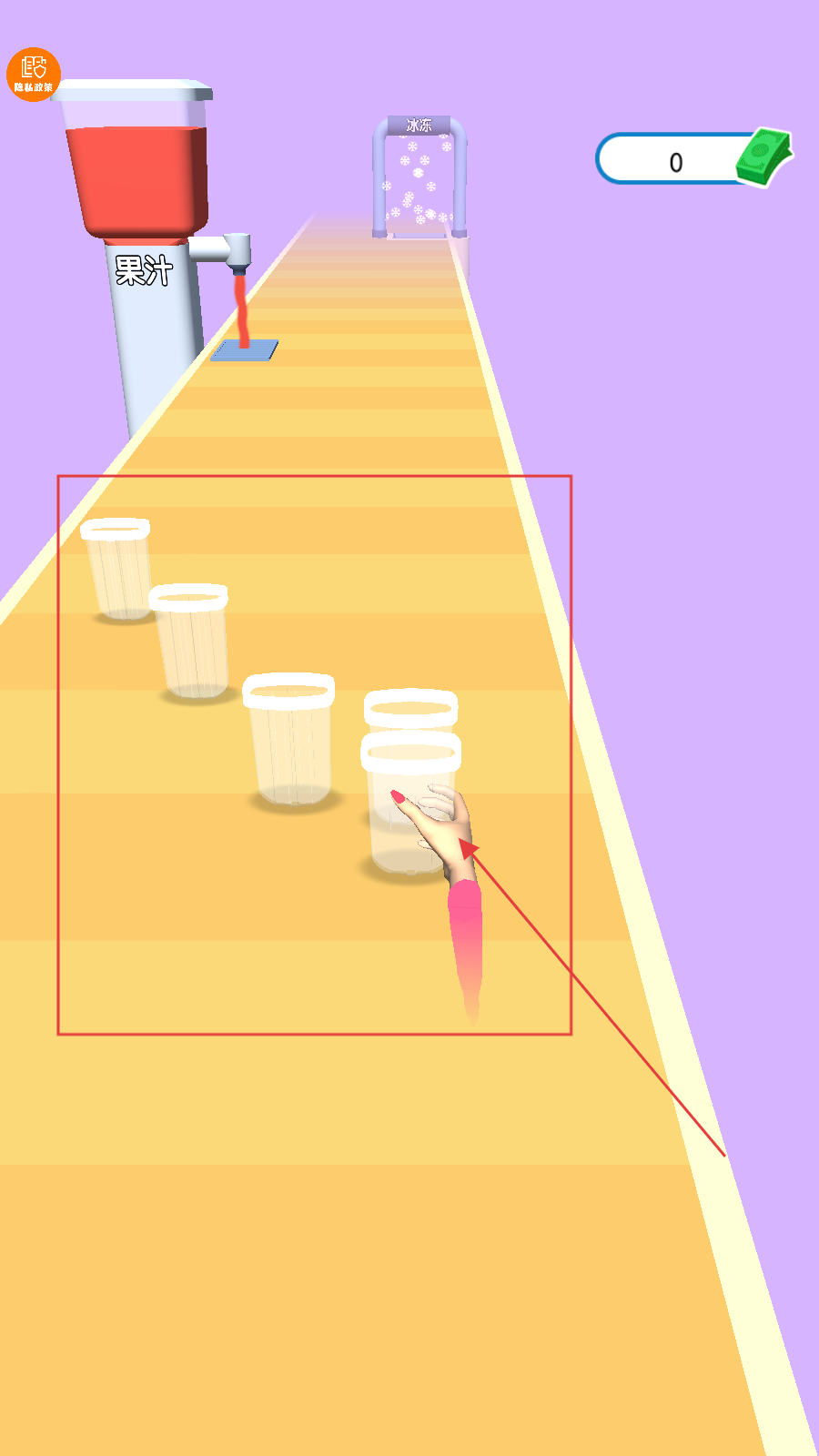 2、移动手指控制杯子,在轨道上收集多个空杯,叠加增加容量。