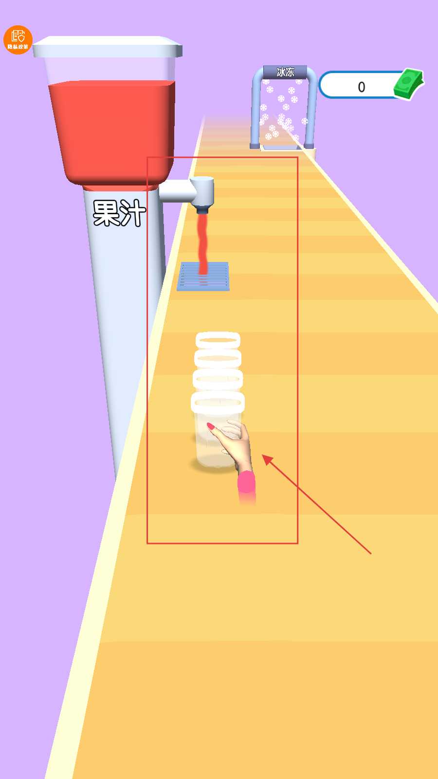 3、将叠好的杯子移至【果汁】龙头下,精准接取红色果汁。