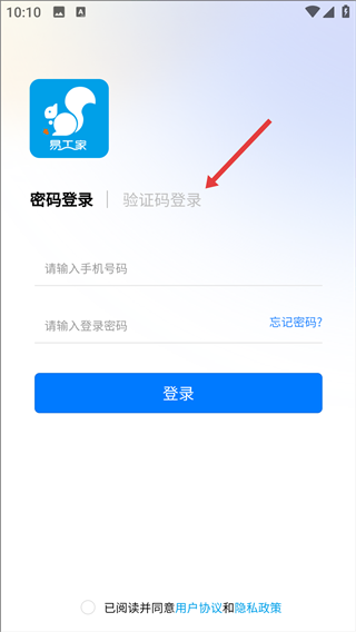 1、打开app,进入登录界面,点击【验证码登录】选项。