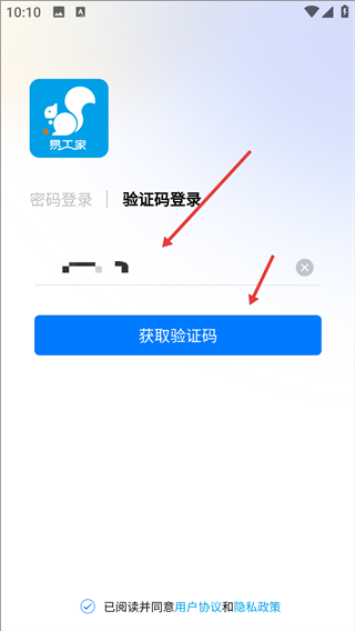 2、输入对应手机号后,点击【获取验证码】按钮。