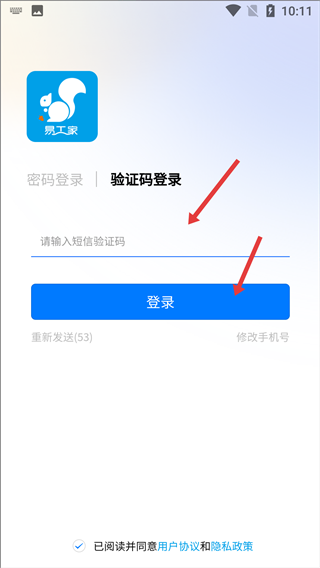 3、输入收到的短信验证码,确认信息无误后,点击【登录】按钮,完成账号登录操作。