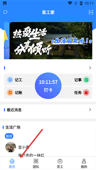 1、打开【易工家】首页,点击底部【灵工】按钮,进入职位展示页面。