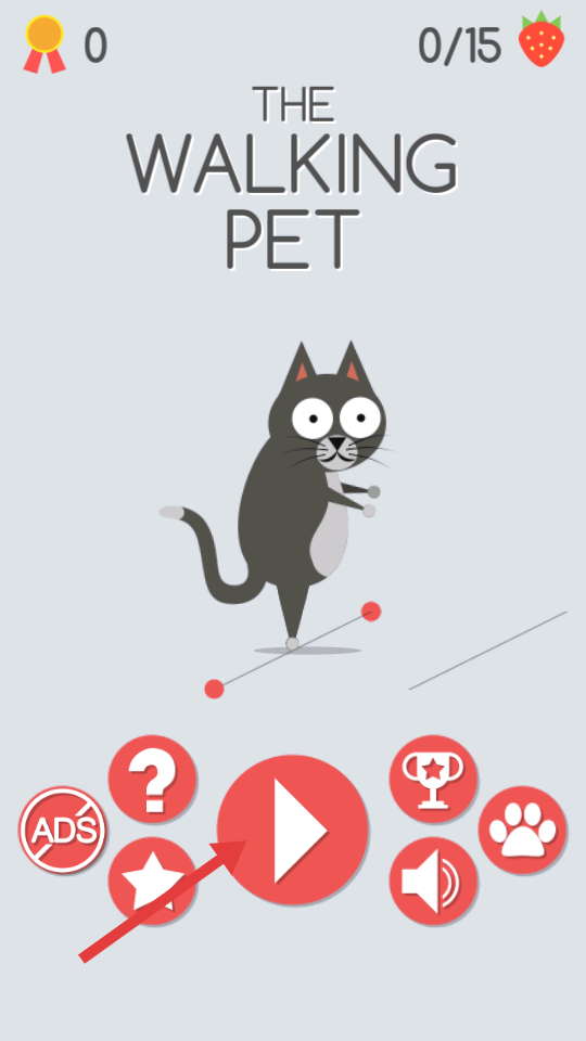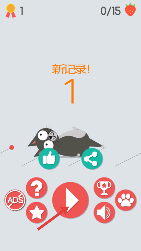1、在游戏主界面点击红色播放按钮,进入游戏,开启猫咪平衡行走挑战。
