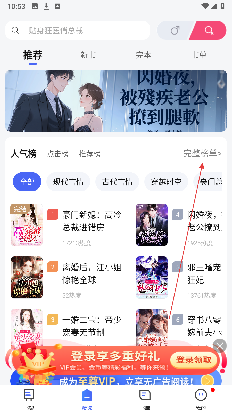 1、在精选页点击【完整榜单】,进入女生榜单页面。