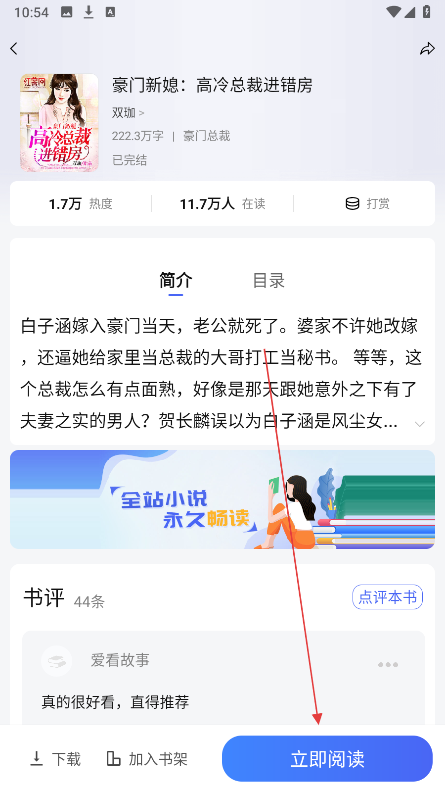 3、进入书籍详情页,点击【立即阅读】进入阅读页面。