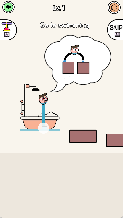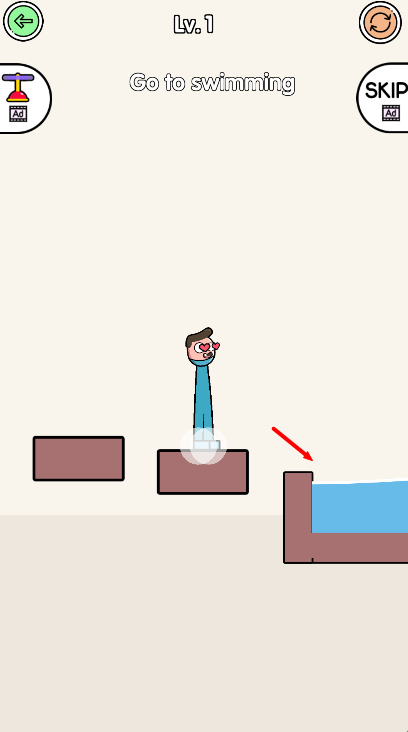 2、根据提示操控角色跨过两个台阶,走向泳池。