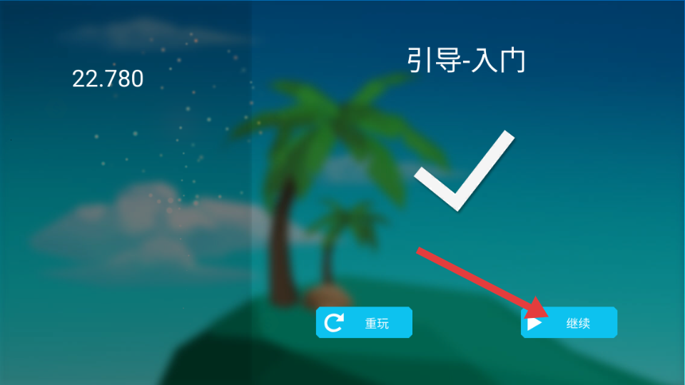 4、完成引导后,点击【继续】进入下一阶段。若需练习,可选择【重玩】提升技巧。