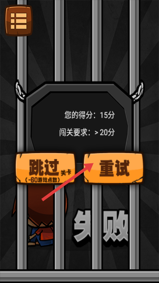 4、若得分未达闯关要求,点击【重试】重新挑战,优化操作冲击目标。
