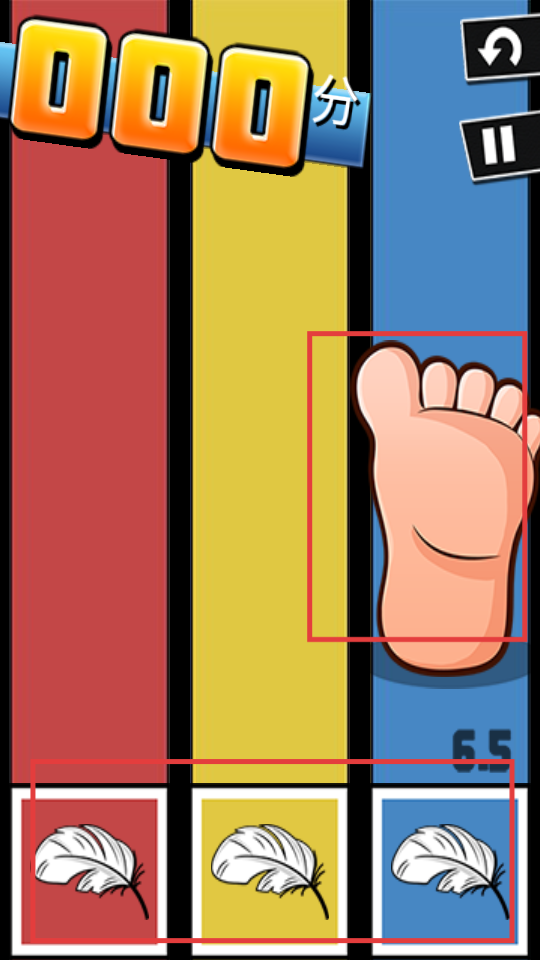 3、观察脚部所在颜色区域,点击下方对应颜色的羽毛,匹配成功获取分数,提升反应力。