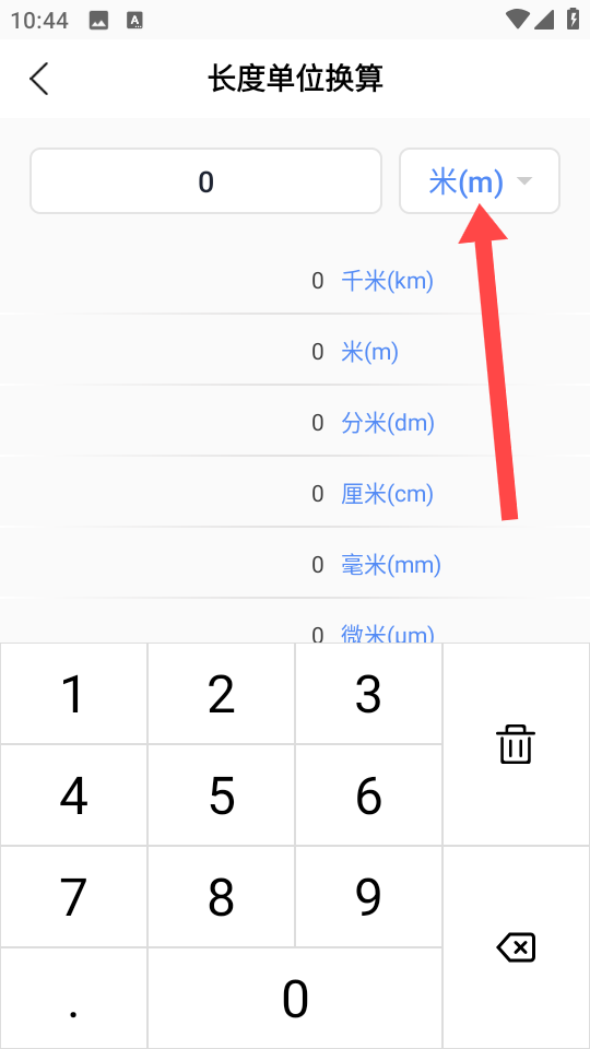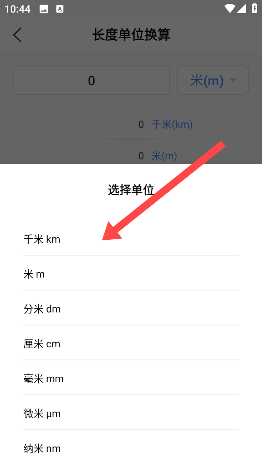 4、在单位列表选目标单位,即可进行对应长度单位换算。