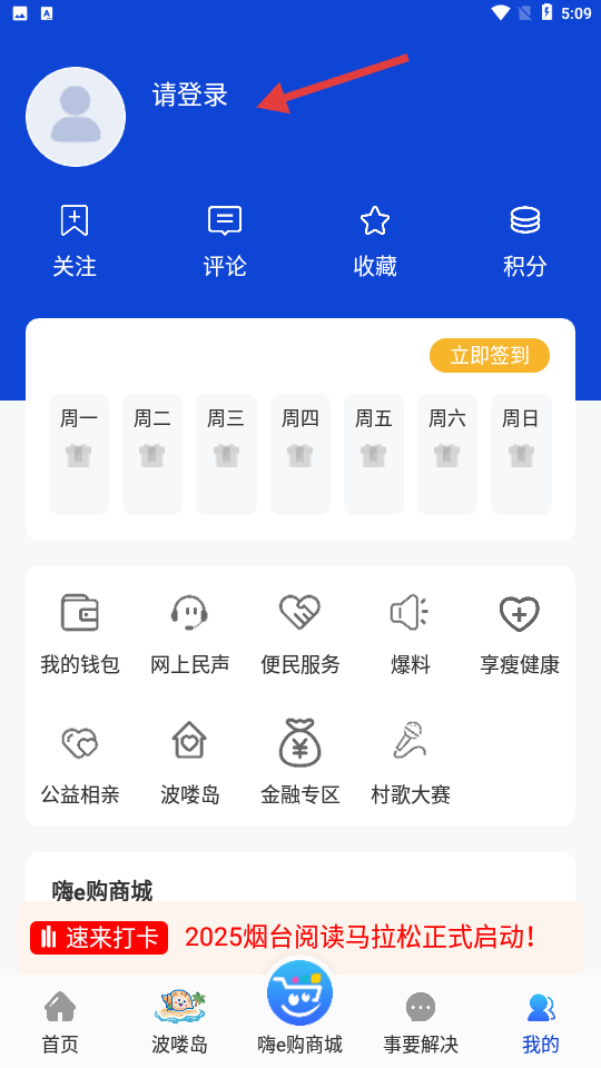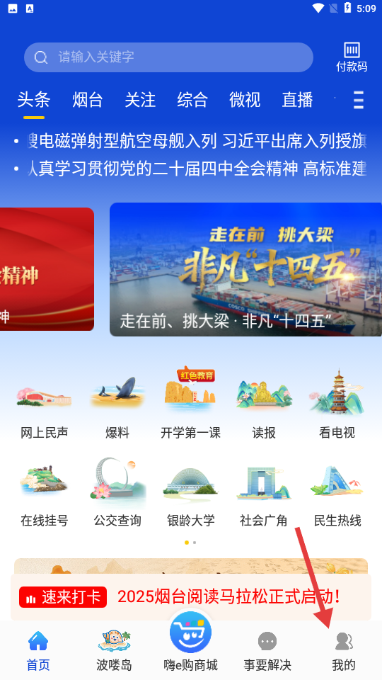 1、打开安装好的烟台E家app,进入新闻头条首页。