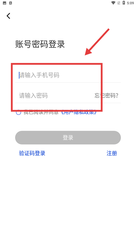 3、输入手机号和密码。