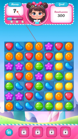 3、留意【Moves】剩余步数,合理规划消除,避免步数浪费。