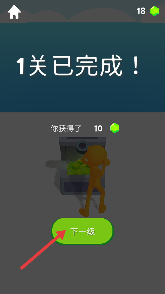 4、关卡完成后,领取10绿宝石,点击【下一级】按钮,继续挑战更高难度关卡。