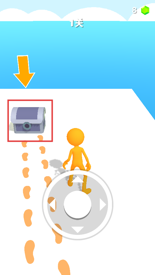 3、沿脚印指引,操控角色移动至左侧宝箱处,获取关卡奖励,积累资源道具。