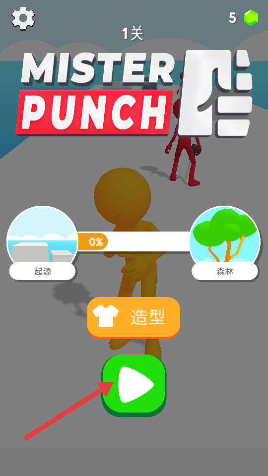 1、点击绿色播放按钮,进入【1关】,操控黄色角色开启游戏的冒险之旅。