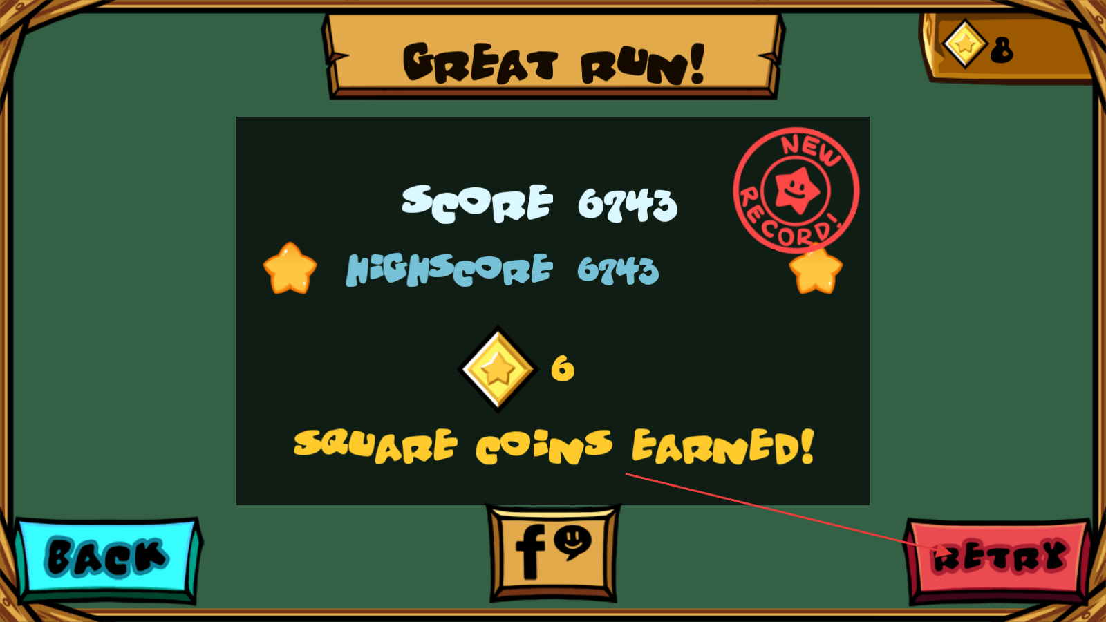 4、跑酷结束,点击【RETRY】红色按钮,重新挑战刷新分数。