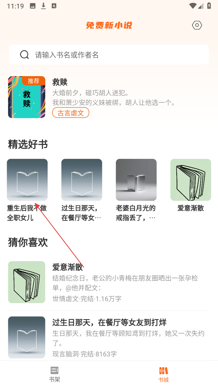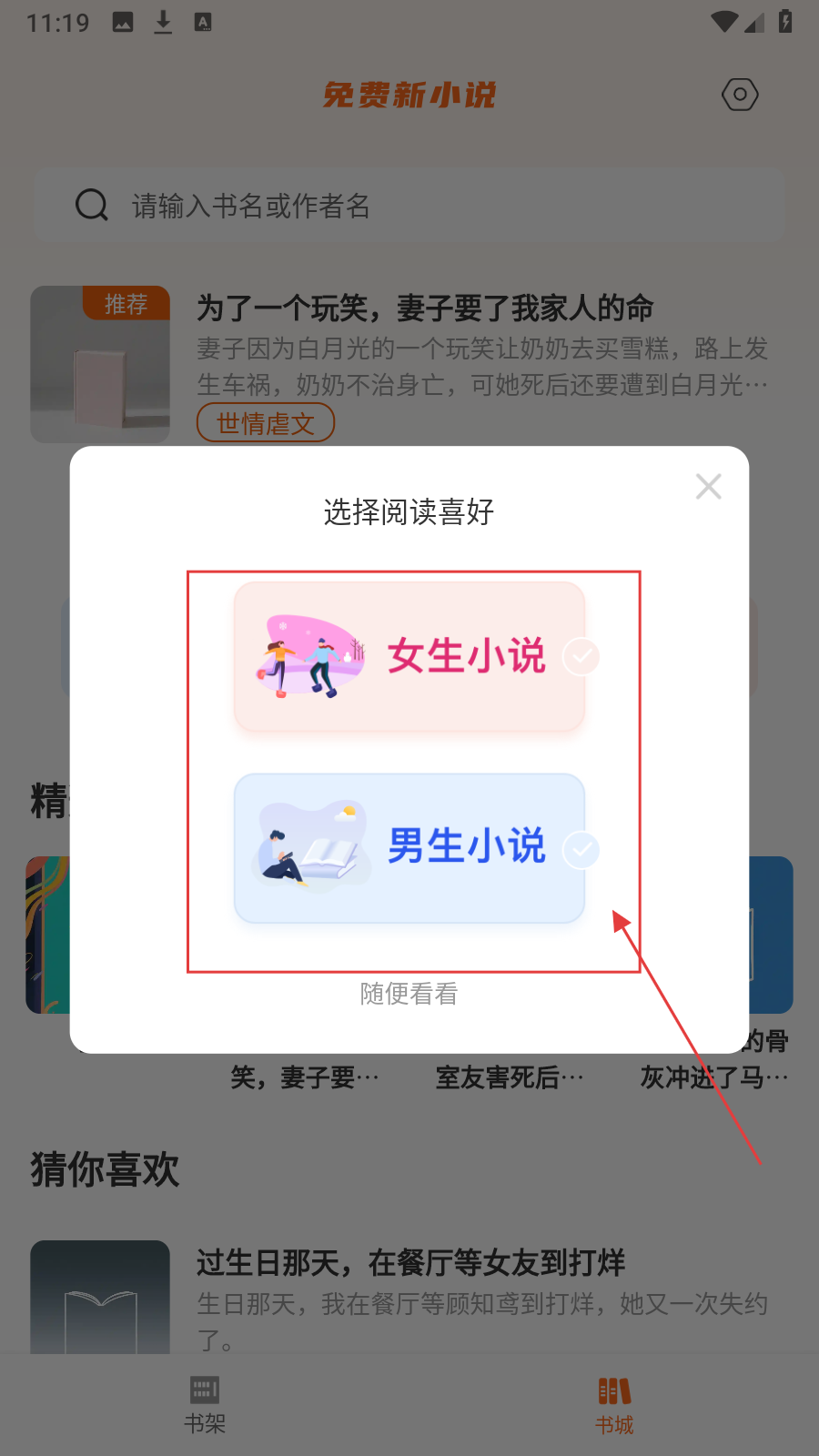 1、在书城页,选择【男生/女生小说】阅读喜好,定制推荐内容。