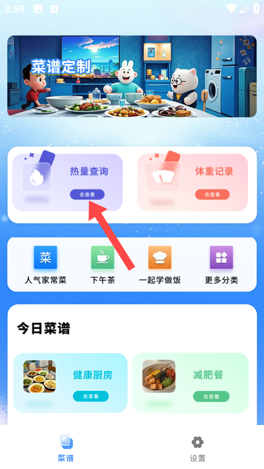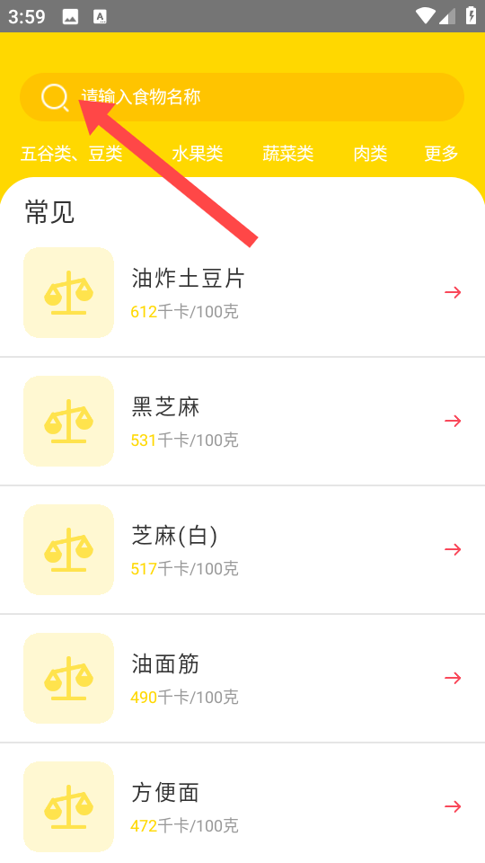 1、在首页点击【热量查询】,进入食物搜索界面。