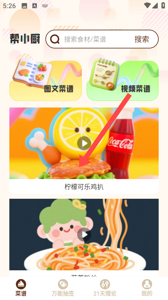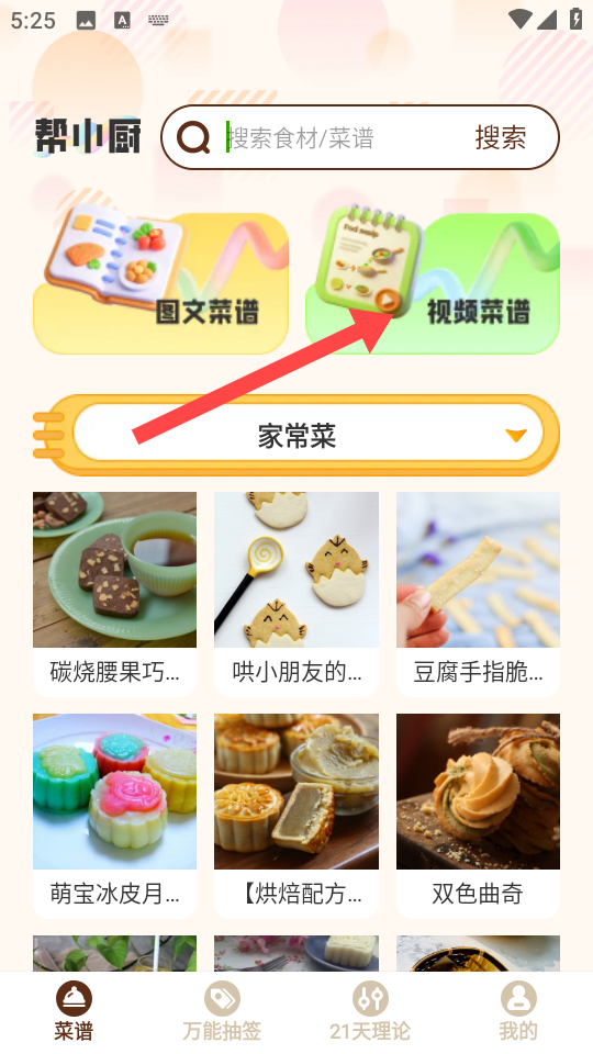 2、在首页选择【视频菜谱】,进入视频列表页。