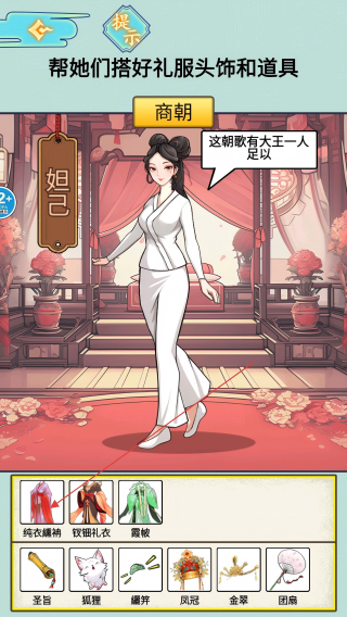 2、根据商朝-妲己主题,从服饰道具中选合适的进行搭配。