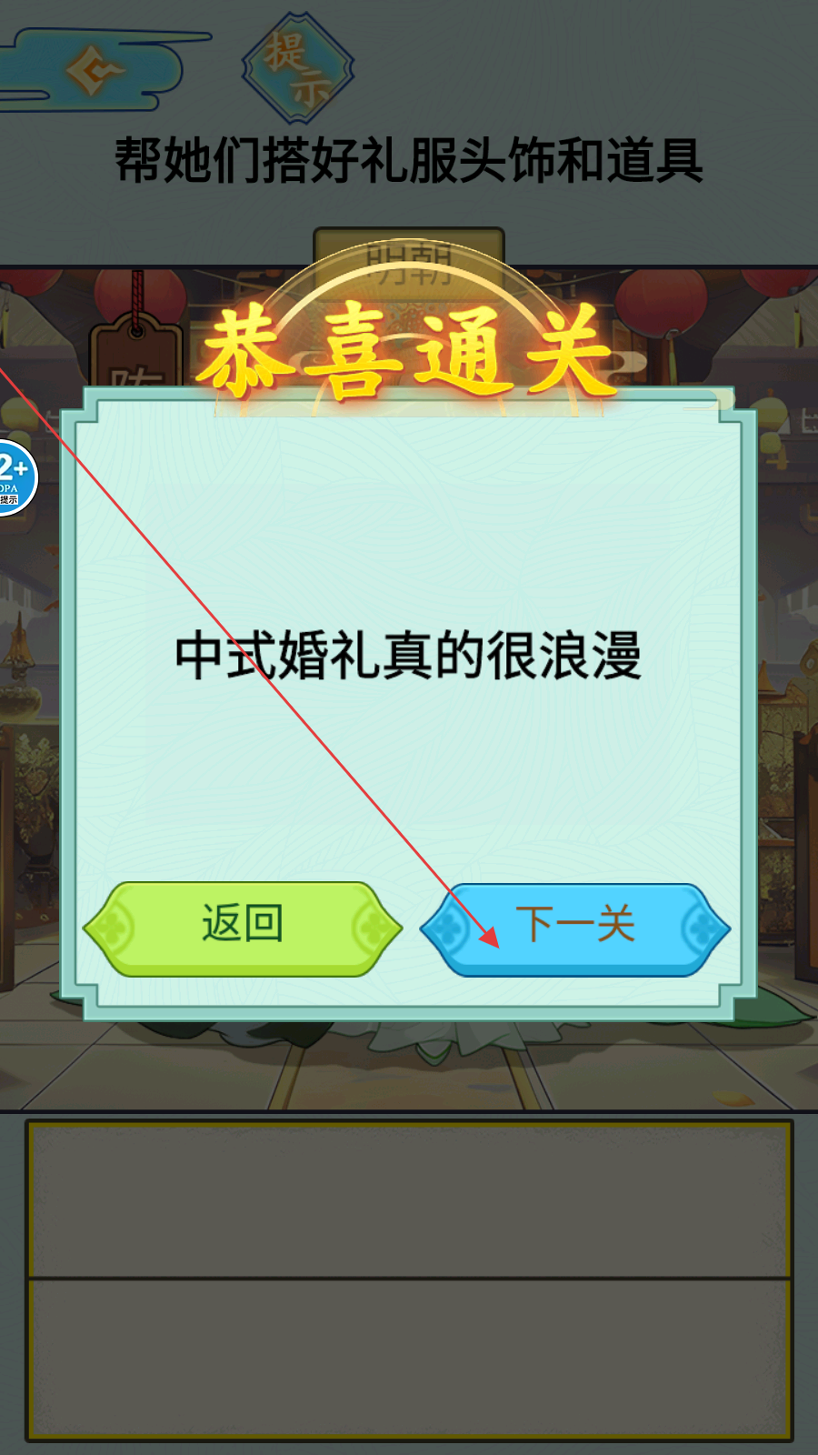 4、通关后点击【下一关】,继续挑战新关卡。