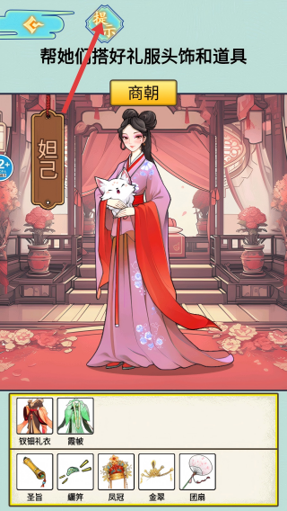3、搭配遇困时点击【提示】,获取线索,调整装扮组合。
