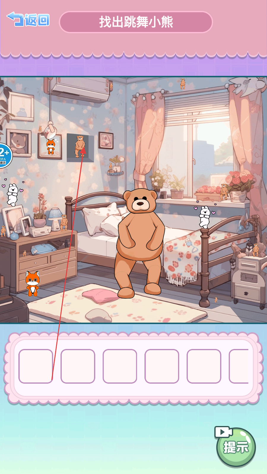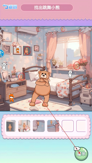 找到跳舞的小熊是一款风靡全网的休闲益智游戏,凭借大量精心设计的关卡吸引着玩家。在每个关卡中,你都需在多样且丰富的场景里,充分调动你的观察力,火眼金睛般地找齐所有跳舞的小熊,才能成功闯关。游戏难度循序渐进,从简单场景到复杂布局,全方位考验你的眼力极限,快来开启这场眼力大挑战吧。