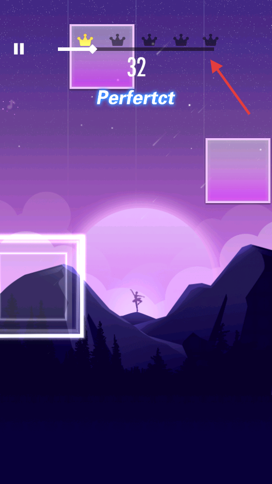2、游戏过程中,当紫色方块下落时,看准时机点击,让方块精准匹配。