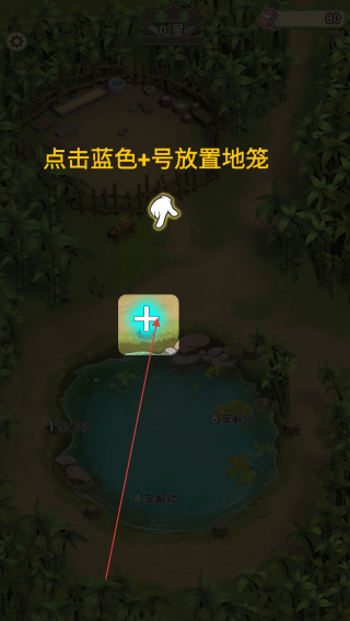 2、点击蓝色+号,在池塘指定位置放地笼。