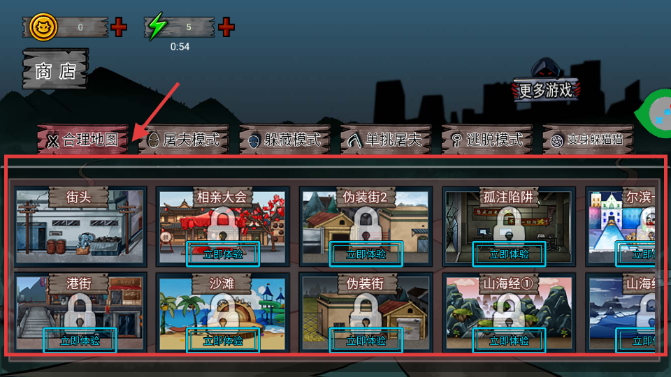 1、在【合理地图】模式下,选择地图,点击【立即体验】进入游戏。