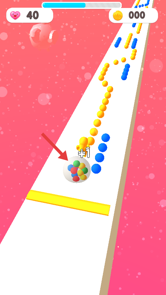 2、在赛道上收集同色小球,让小球数量增加,同时避开障碍物。