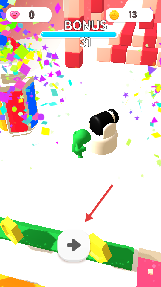 3、遇到由方块组成的障碍结构时,操控角色用收集的小球去破坏障碍。