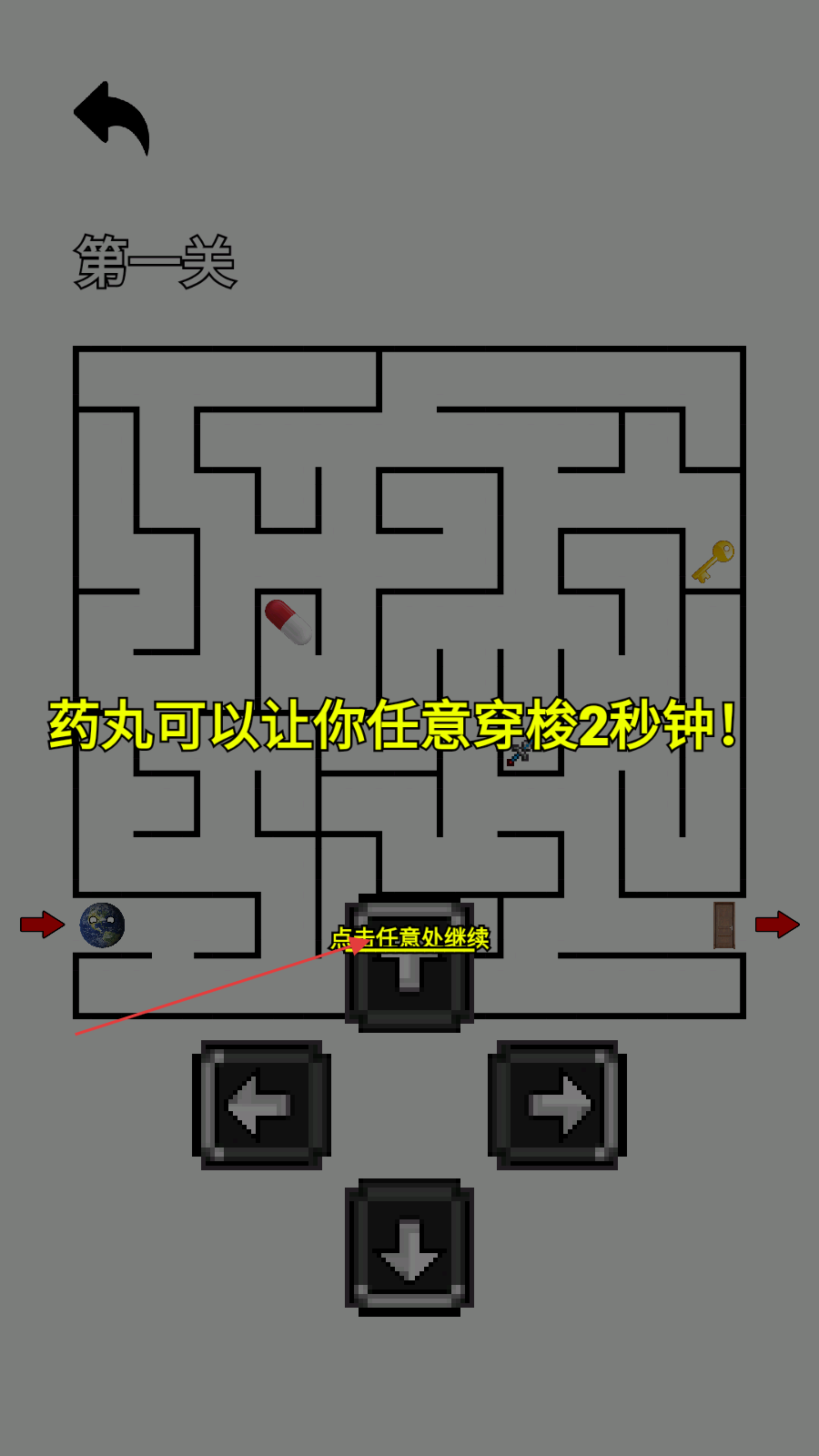 2、第一关迷宫,先点击任意处,利用药丸穿梭,规划路径找钥匙。