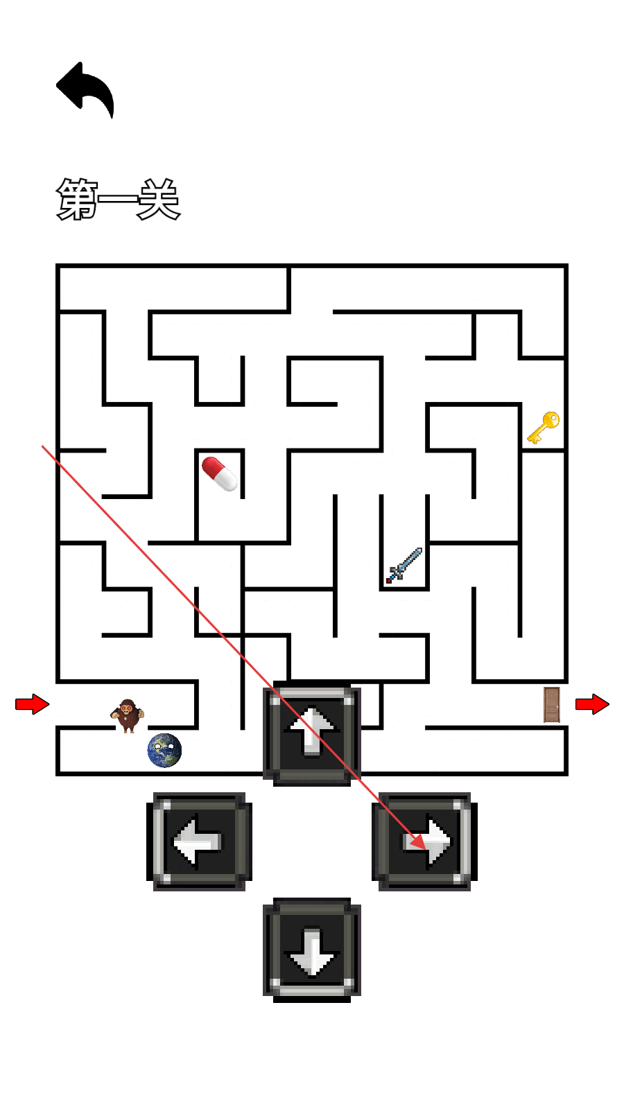 3、点击方向键移动角色,避开危险,获取迷宫中的武器道具。