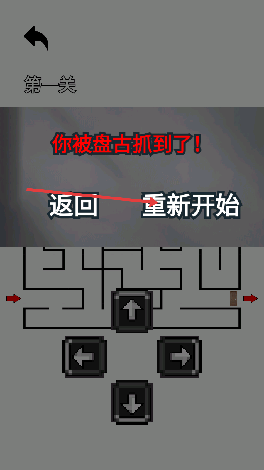 4、若被盘古抓到,点击【重新开始】,再次挑战第一关迷宫。